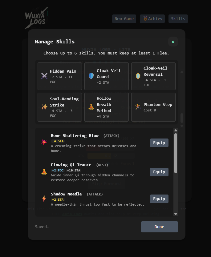 If you enjoy it, the full Wuxia Logs expands into sects, skills, and a living world beyond the storm, with endless exploration, immersive martial stories, and diverse playstyles.
